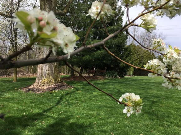 Near the back of our property you see our deer, Cecil and Emogene, cement statues, who live here under the pine. I named them. Sometime, I’ll tell you the story, if you ask me!