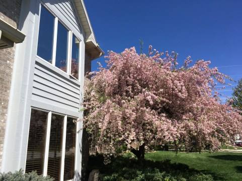 Our fragrant Ornamental Weeping Crabapple tree in our front yard.