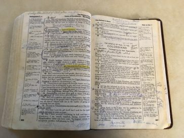 From my father’s last Bible. He died in 2004. Can you enlarge this and note his interactions with the text?
