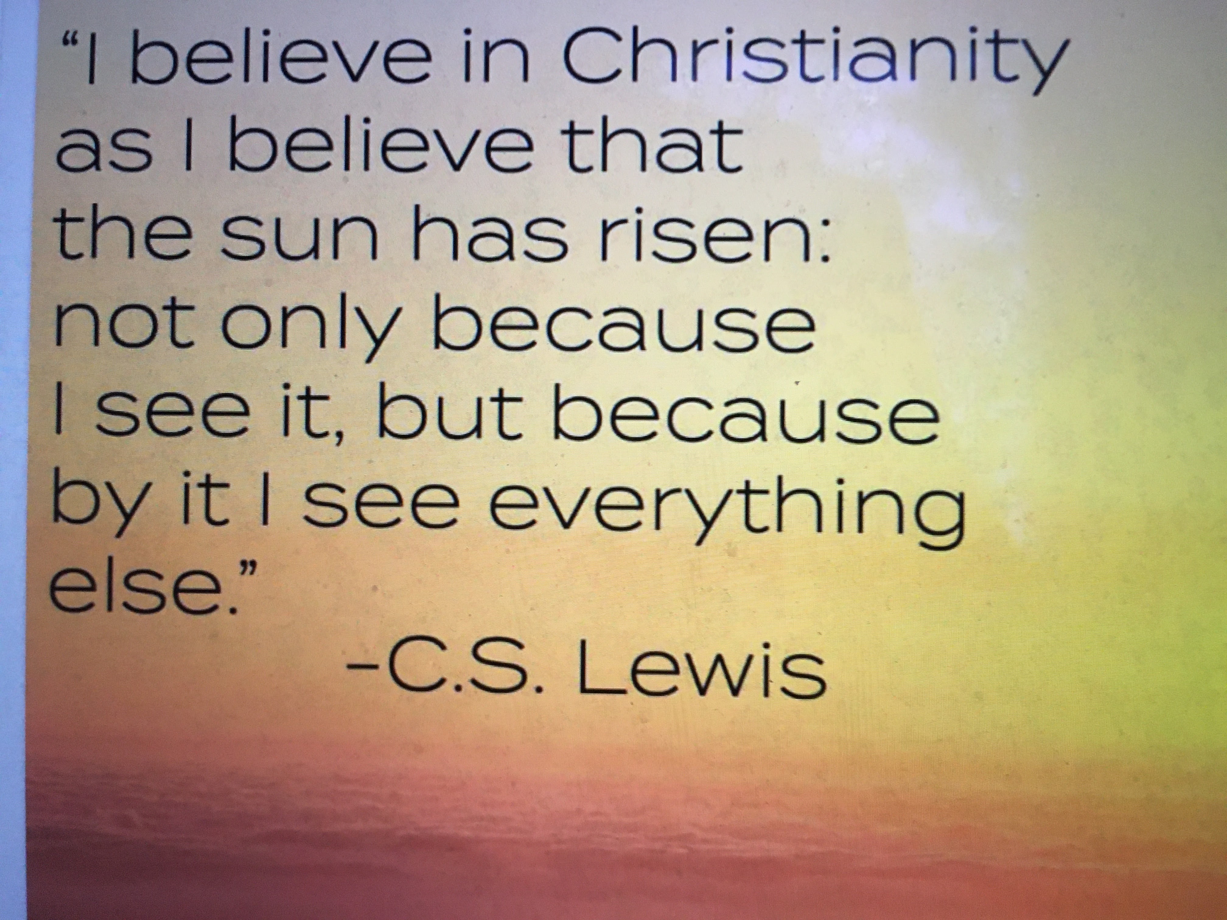 It appears that Kirk saw the world largely by the light of the same sun as Lewis. May we accept the light of the “risen son” shining upon us and our world.