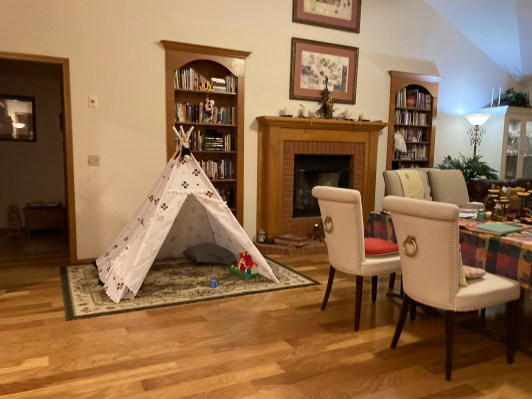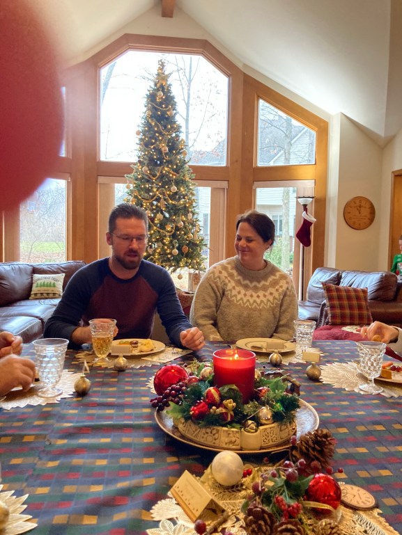 Last Saturday, we hosted a Christmas brunch for relatives of ours that live in or near Fort Wayne, Indiana where we now live. We had my sister and brother-in-law and two of their adult children and spouses with their children (four children and eight adults in total). The little ones (ages 4-7) happily explored our house, feeling so at home, chattering, prancing, playing with toys I laid out in or around an indoor children’s tent.