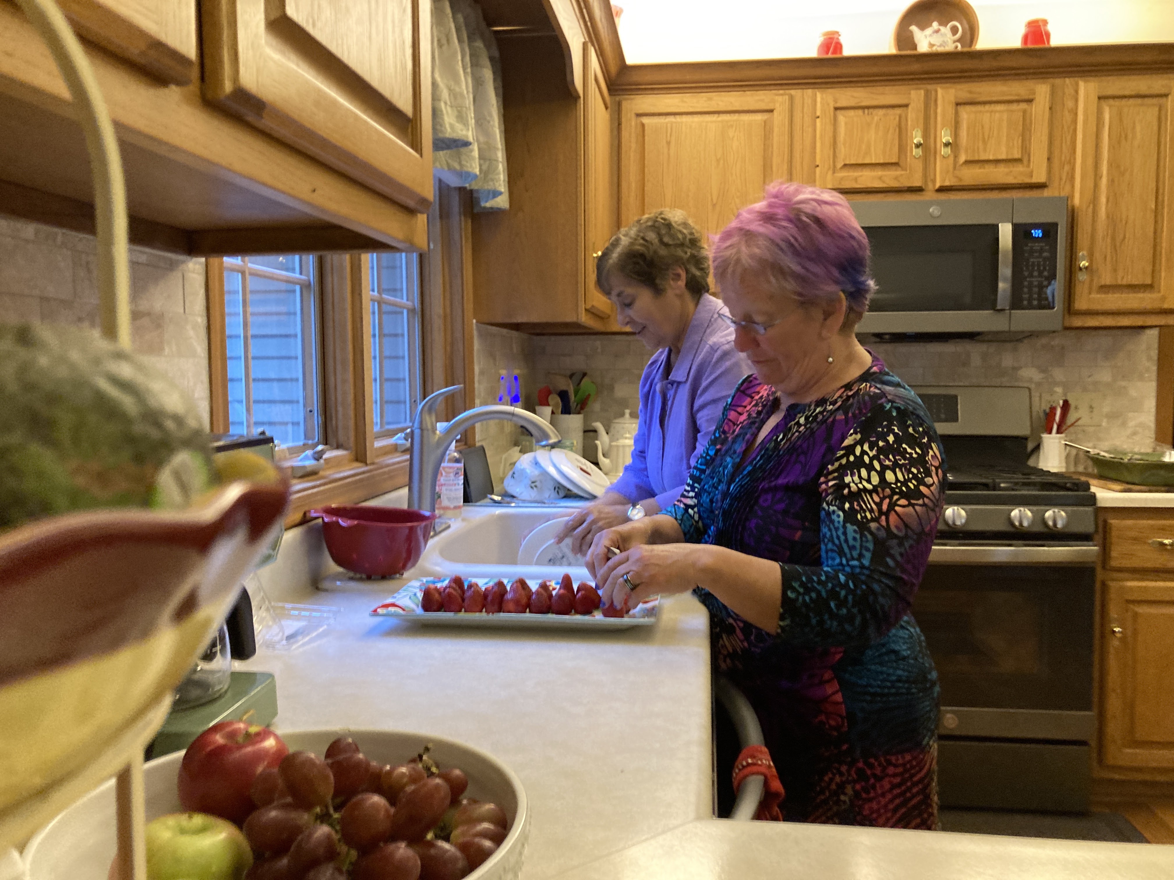Sandy arrived first and settled in her room, and Paula arrived a half hour later. Since they arrived by 2:00 on Sunday afternoon, we had a lot of day left to re-connect. We hugged and chattered away in the kitchen area. I had made a large apple crisp, using organic apples from Aunt Mary’s big apple tree you read about in the previous post. A yummy start for our retreat. My husband, Paul, met Paula for the first time. Sandy and I have kept up a close friendship over all these years, and her husband, Bill, who graduated to glory in March of 2020, and Paul had built a congenial friendship over the years.