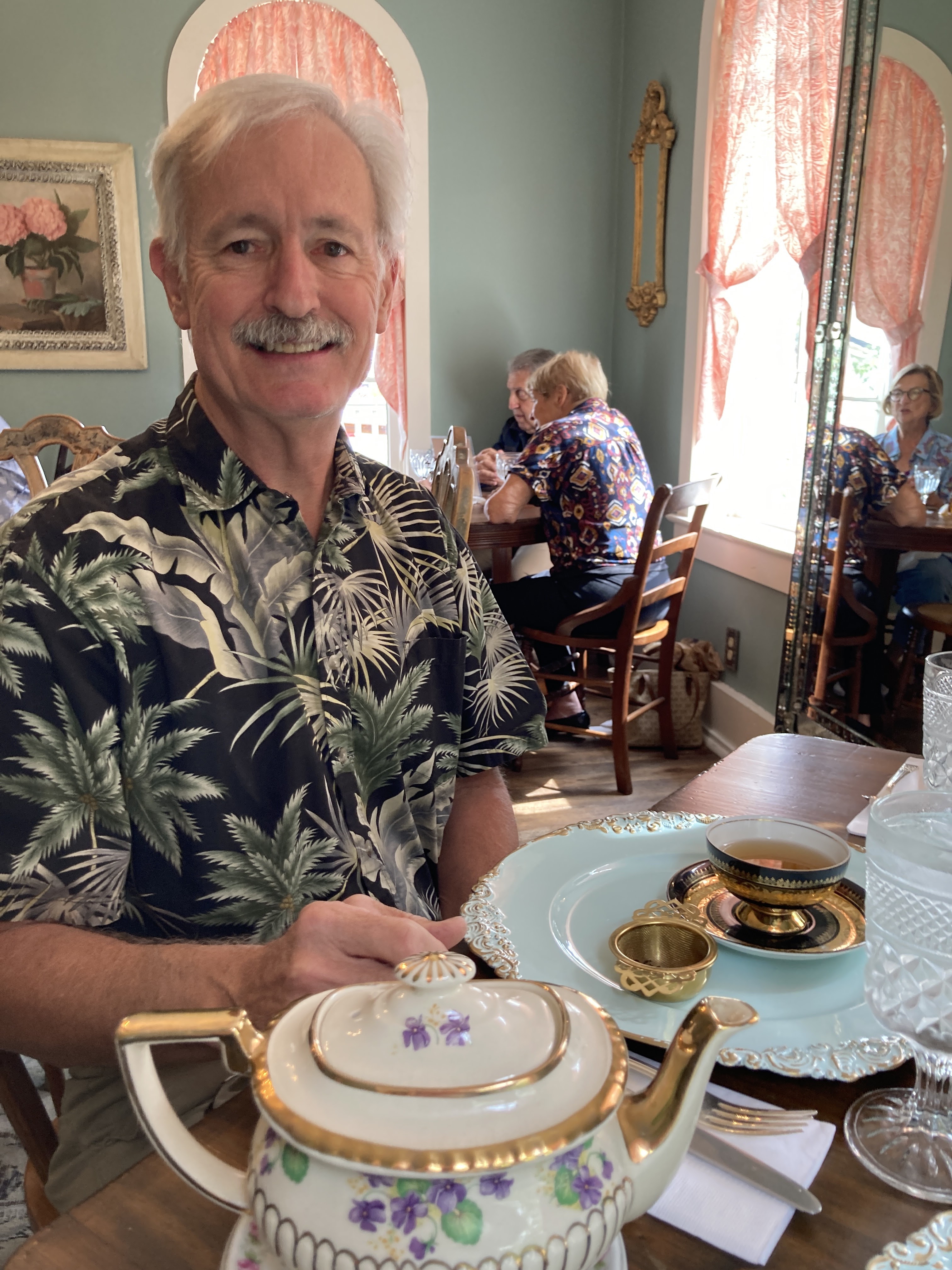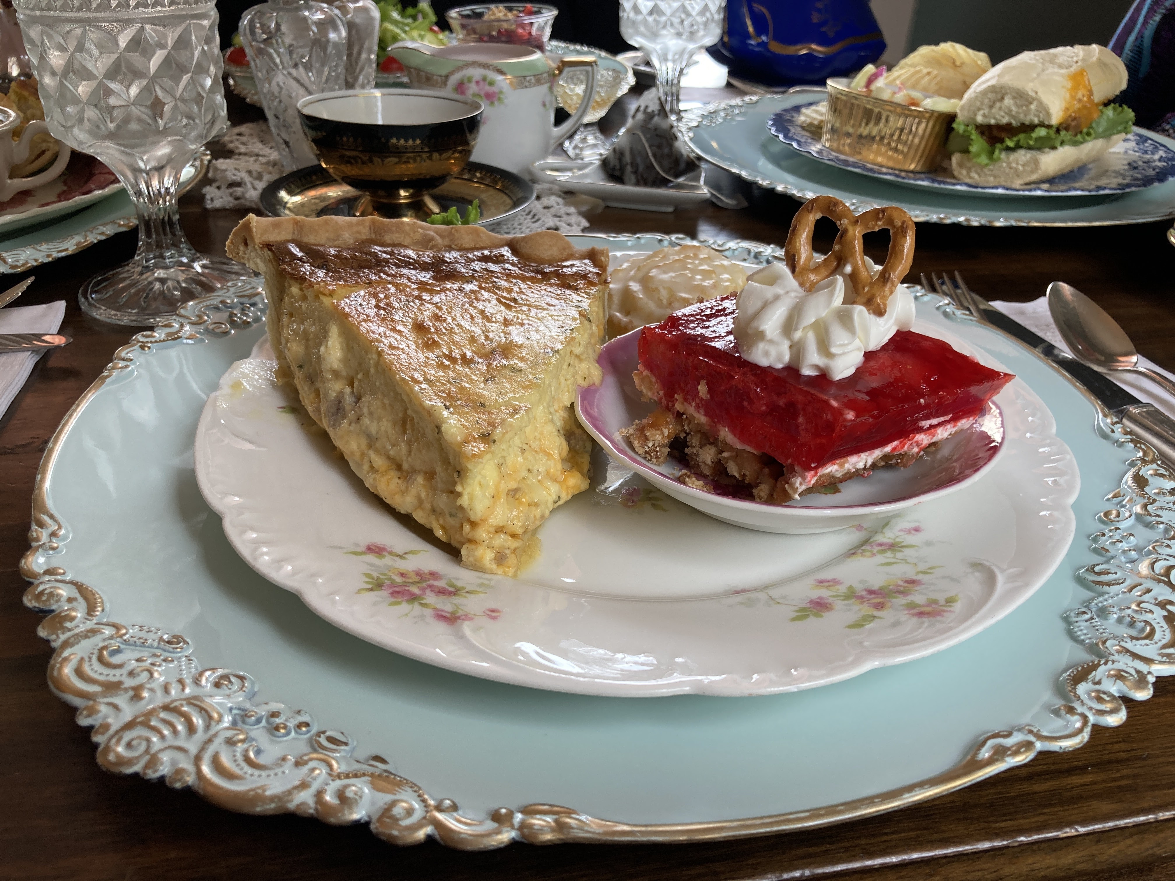 Paul’s quiche is gone! He thought it was almost as good as his wife’s. What else could he say? And he really enjoyed his pot of herbal peach tea.
