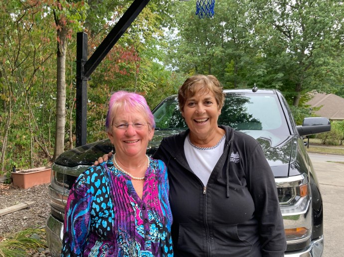 Sandy (less than 5 feet tall) drove up from Anderson, South Carolina on her yellow, three-wheeled motor bike, a 12 hour trip she did in one day. Gutsy is her middle name, and everyone knows it. Paula drove over from Columbus, Ohio, a 3 1/2 hour trip, in her truck — a big, black Silverado. Paula’s a can-do woman who lived until recently on a horse ranch and still has horses. Hmm, and then there’s wimpo me! I have to summon up discipline and bravery to walk around my beautiful block. Sore legs, ankles, and feet (and whatever) talk back to me: “You really don’t want to do that, do you?! Sit down!” No wonder these wonder women traveled to my house!