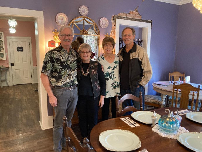 Brenda and Marty visited us in October of 2023. Here we are at the Parker Grace Tea Room in Roanoke, Indiana. What gracious, manly men who chose to take their precious wives to a tea room for lunch. And they loved every yummy bite.